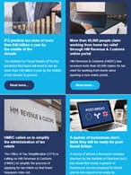 More than 3,000 taxpayers complete self-assessment on Christmas Day, Should your company pay a data protection fee?, SMEs now wait 23 days for late payments, new study finds, Reminder: National Living Wage set to increase from April, HMRC launches revamped CEST IR35 off-payroll working tool, VAT receipts reach record level of £133 billion, New Advisory Fuel Rates